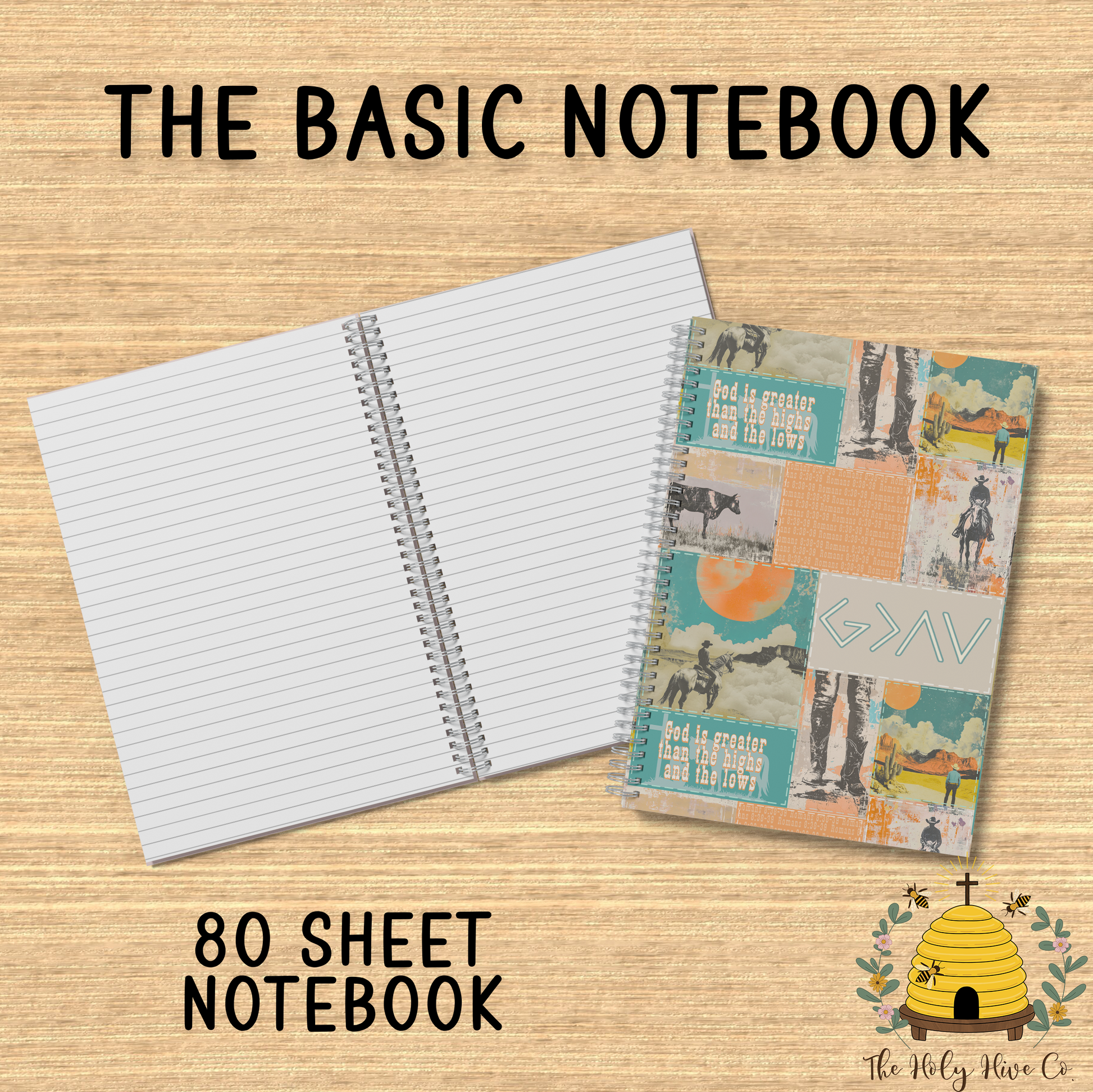 The Basics Notebook - God Is Greater Cowboy Patchwork